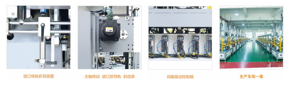 该机融纸盒的包边、折入,压泡为一体,运用伺服驱动斜齿轮和凸轮完成连贯动作,稳定流畅,精密耐用,是目前相对合理的一款成型机,也是广大礼品盒生产厂家的明智必选机型。